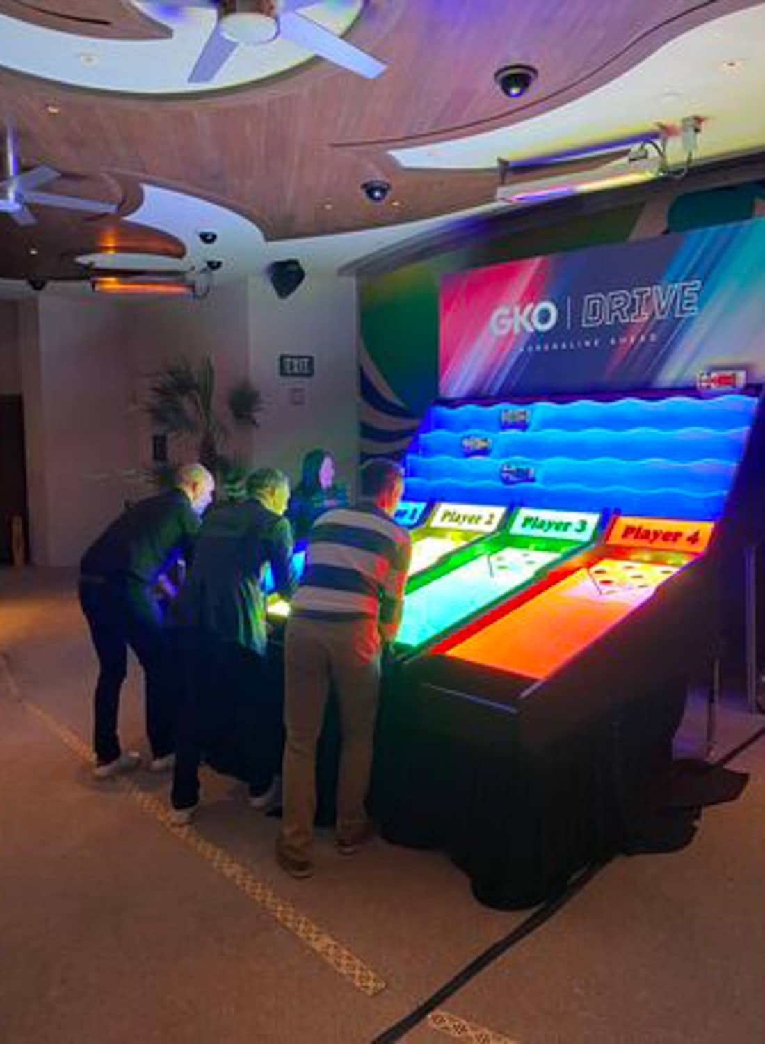 Bring the arcade energy to your next event with Roll-A-Ball Racing—a classic four-player game that gets everyone cheering. Players roll balls into scoring holes to race their characters across the track in a fast-paced, competitive showdown.