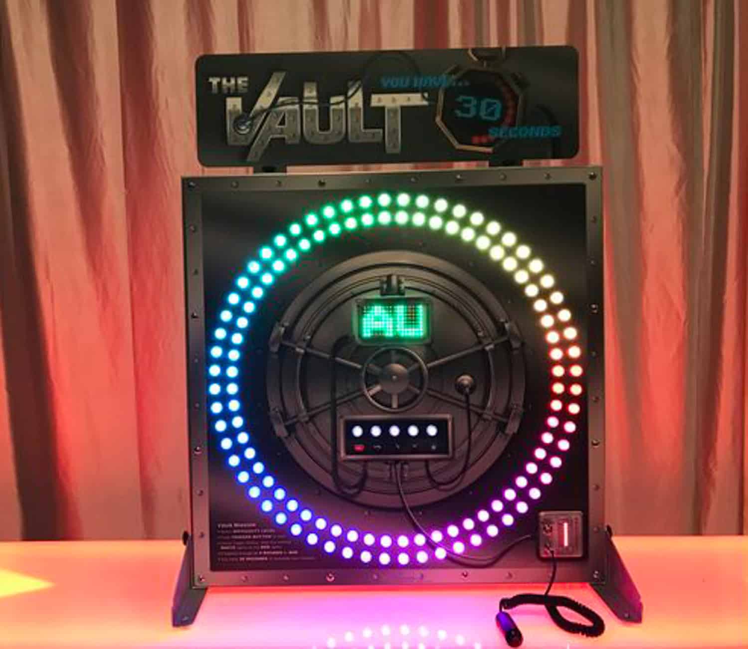 Crack the code and unlock the excitement with The Vault! This high-tech, interactive game challenges players to stop the lights at the exact right moment to crack open the vault. Perfect for thrill-seekers and competitive guests, it adds an element of suspense, strategy, and nail-biting fun to any event.